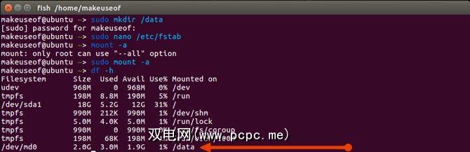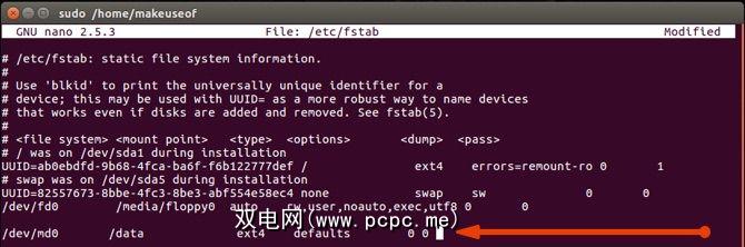 mount /dev/md0 /data/如果您希望保留存储,则需要编辑/ etc / fstab文件,并确保添加如下图所示的行: