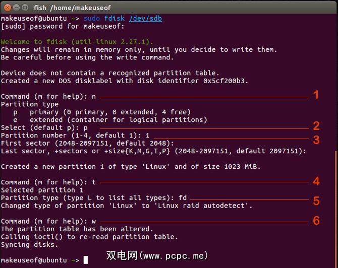 现在,我们需要对这些磁盘进行分区。确保备份您表弟的毕业照片,而不要备份这些驱动器,因为这是一个破坏性的过程。在终端中,输入: