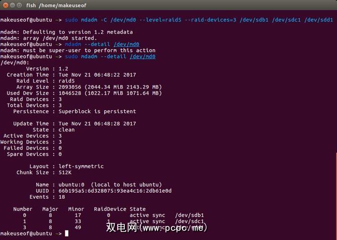 要在RAID 5中对其进行设置,请运行: