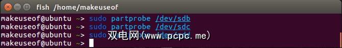对其余两个驱动器执行完全相同的步骤。即 / dev / sdc 和 / dev / sdd 。现在,我们需要将所做的更改告知操作系统: