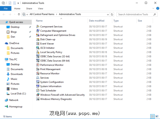 可以通过开始>控制面板>管理工具或通过运行命令来访问它们。