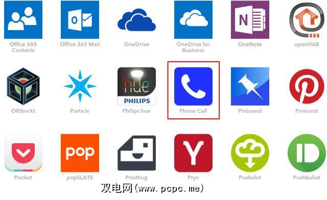 创建此触发器后,接下来,您可以为IFTTT创建一个操作以调用智能手机并唤醒您。要设置这样的呼叫触发条件,请从选项列表中选择“电话呼叫"警报工具。