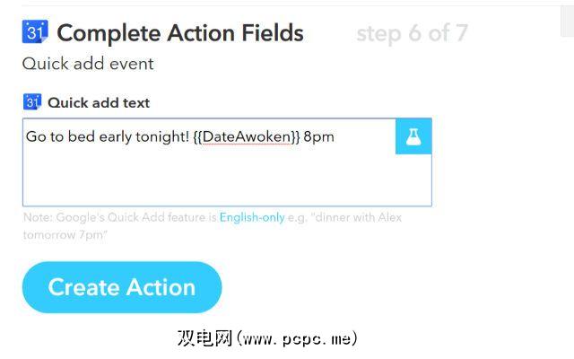 前一天晚上,基于Fitbit睡眠不足触发的另一种聪明的动作是自动在其中创建提醒您的Google日历可以在同一天晚上上床睡觉,这样您就可以恢复睡眠状态。
