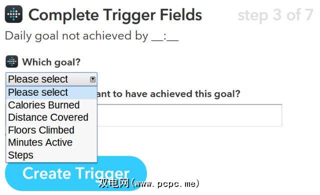 您可以在IFTTT中找到的最有用的Fitbit触发器之一就是每日目标触发器。这样做的好处是,它可以让您选择要用Fitbit跟踪的特定目标,以及您要达到该目标或触发某些动作的确切时间。