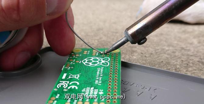 您会在树莓徽标的右侧找到它;它被标记为“电视",因此应该不难发现。注意这是一对连接。方形的是信号,而圆形的连接器是地面。