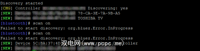 default-agent下一步是开始扫描可发现的蓝牙设备。使用“扫描开启"命令开始扫描: