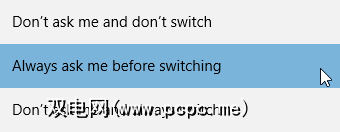 类似地,您可以将Windows 10设置为始终询问您的切换偏好,从不询问或只是继续进行切换,例如: