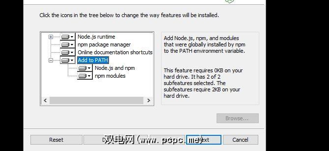 打开 .msi 文件并按照安装说明进行操作,确保将其添加到您的 PATH 中。当前的Node.js安装程序将PATH作为标准添加,尽管值得在安装过程中进行检查,因为这是下一步所需的操作。