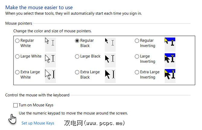 此外,还请学习使用称为 Mouse Keys 的辅助功能。视窗。鼠标键是为难以使用鼠标的人设计的。该功能在两个操作系统上都是通用的,它使您可以使用键盘控制鼠标指针。