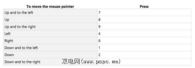 在Windows上,数字键盘上的小键盘有助于在屏幕上移动指针。