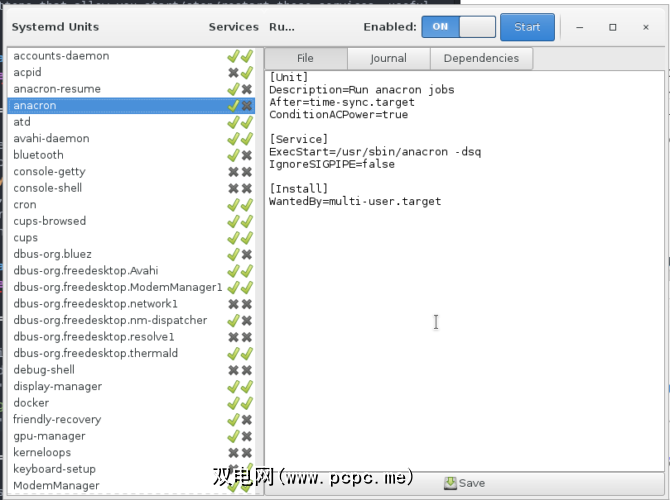 sudo apt-get install kde-config-systemdsystemd-manager 是某些存储库(包括Fedora和Arch)中可用的基于GTK的应用程序,而Ubuntu用户可以从其GitHub页面上获取.DEB文件[不再可用]。用户界面有些不同,因为它是用Rust编写的,但是很容易找到启用/禁用和启动/停止服务的控件,而大的中央窗格则允许您编辑配置。