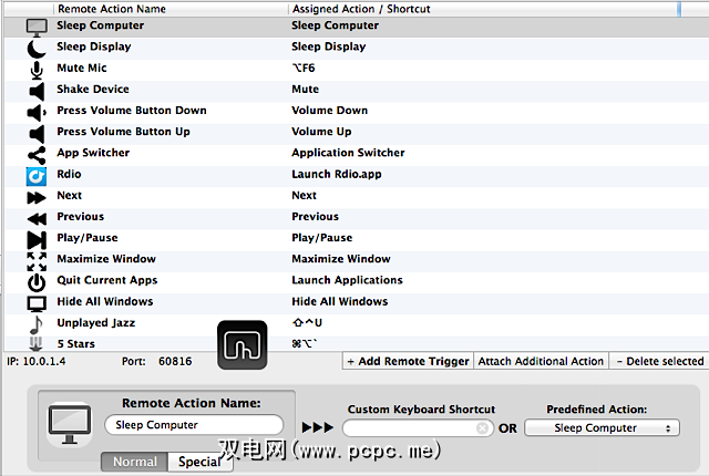 BTT Remote,免费的BetterTouchTool的配套iOS应用(此处已查看)为我在整个房间控制Mac的首选解决方案。我之所以使用它,是因为它提供了与我用于控制iTunes和音乐流应用程序Rdio相同的功能强大的Mac触控板控件,以及使我的Mac处于睡眠状态,最大化和退出窗口,甚至为当前播放的歌曲添加了五星级评级