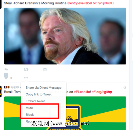 如果您在Twitter网站上,请单击鸣叫下方的三个水平点。这为您提供了带有一些选项的菜单。其中两个是“ 静音"和“ 阻止"。有什么区别?屏蔽某人意味着您将其从Twitter流中删除,而不取消关注他们。他们不知道他们会被静音,但是他们仍然可以向您发送直接消息,并显示在“通知"标签中。
