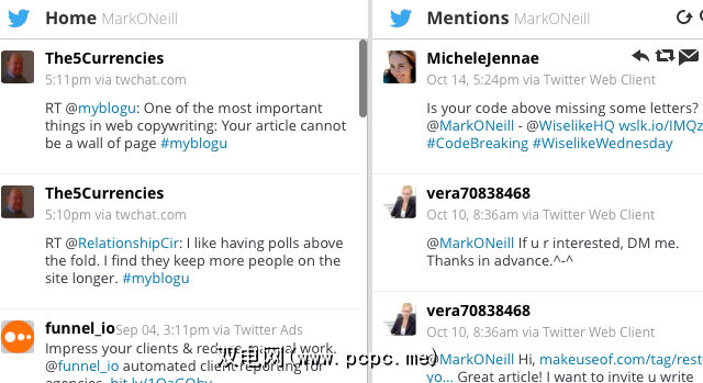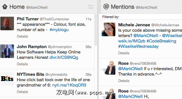 这两个功能都可以使您拥有多个帐户,因此要检查它们,只需在选项卡之间切换即可。您可以并排放置不同的列,其中还包括监视搜索词和用户名。当您以这种方式安排所有内容后,检查更新确实很容易。