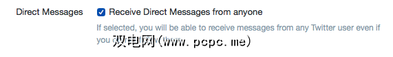Ever自从Twitter取消了直接消息的140个字符限制以来,直接消息功能(和DM组)实际上已成为另一个电子邮件收件箱。由于我几乎无法跟上正常的电子邮件,因此我真的无法避免通过Twitter收到长消息。因此,取消选中“从任何人接收直接邮件"将阻止您的直接邮件收件箱被大量吸人深深的麻烦所打击。