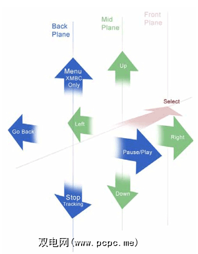 另一个选项是使用它通过一组自定义的击键来控制游戏,例如简单游戏等。在继续进行媒体中心控制之前,请尝试一下此方法,因为它可以帮助您掌握背面和中间平面的控制。在虚拟鼠标以外的模式中,基本上有两层控件。切换到自定义键进行尝试。向前或向后移动您的手,视频预览窗口将在背板显示红色,在中板显示绿色,并且当您在两者之间移动时会发出蜂鸣声通知您。试一试,然后在掌握其功能后切换到XBMC(或Boxee)模式。