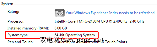 检查您正在运行的Windows 7类型。打开开始菜单,右键单击计算机,然后选择属性。在系统下,您会发现系统类型,在这里您将发现32位或64位操作系统。