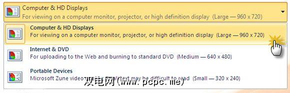 PowerPoint 2010仅支持一种视频格式。诸如MP4,FLV等更多选择非常方便。为此,您仍然必须依赖第三方转换工具。另外,提供的最高分辨率是960×720。没有更高的分辨率(通常是可用的),例如1,280×720、1,920×1,080或1,920×1,080。