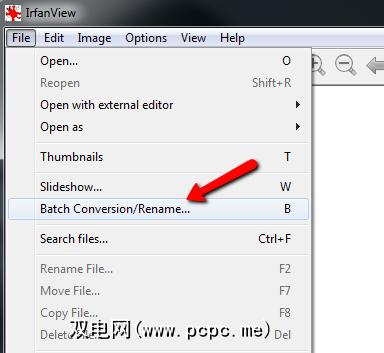假设您的目录中包含一堆要调整大小的大图像,则可以通过打开程序来开始使用(下载副本(如果您还没有),请单击“ 文件"菜单,然后从列表中选择“批处理转换/重命名"。