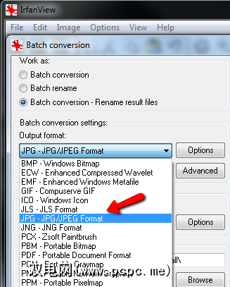 第三步是确切告诉转换器要使用哪种输出格式。从窗口的左上角开始,必须减小图像尺寸的第一选择是更改格式。您可以使用“ 输出格式"下拉列表来执行此操作。如果我的原始文件是PNG文件,如果要在线发布,我几乎总是将其保存为JPG。