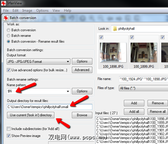 批量转换过程的最后一步是设置输出路径。通常,我只是在映像目录中创建一个名为“ small "的目录。您可以通过点击“ 使用当前的'查找'目录"按钮来完成此操作。这省去了重新键入源图像的整个路径的麻烦。然后,只需在末尾键入“ \ small"。