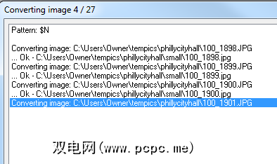 单击“ 开始批处理",您应该看到以下内容转换进度框弹出窗口,在每次图像转换后显示“…确定"状态。