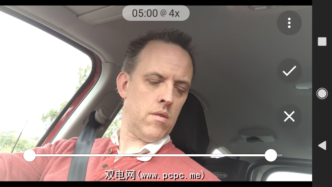 在屏幕顶部,您会看到有关视频时长和速度的信息。同时,在底部查找手柄。可以拖动它们以减少视频的长度。拖动这些手柄时,视频的持续时间将减少。