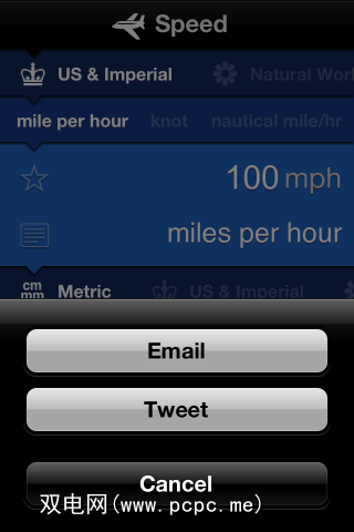 您可以使用该应用分享遇到的任何有趣的转化。只需单击屏幕左下方的按钮,您就可以通过电子邮件或推特发送旅行中碰巧遇到的任何有趣的转换。