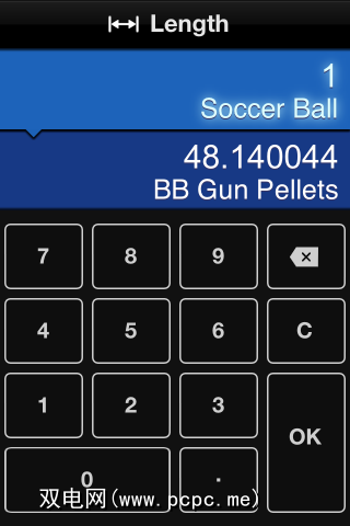 将英寸等单位转换为米是非常有用的,但是此应用程序还提供了一些您不会经常看到的实际转换。例如,您可以将一个足球转换为BB Gun子弹。如此奇怪的转化使该应用真的很棒。