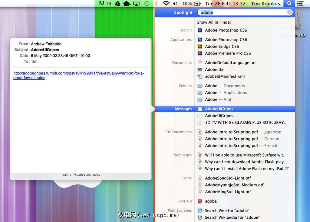 同时,停靠和搜索功能也称为 Spotlight 是Mac OS X的“开始菜单"等效项。这两个功能都完全不同,但是功能强大且可以很好地协同工作。