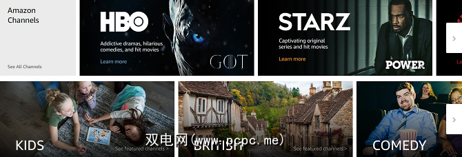 Amazon允许您向高级有线频道添加订阅,例如全屏($ 5.99 / mo),PBS Kids($ 4.99 / mo)和CONtv($ 4.99 / mo)。某些频道甚至允许您实时观看直播和观看频道。