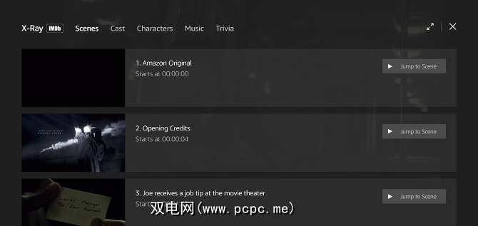 您还可以展开X射线以查看剧集或电影中所有场景的列表,然后立即跳转到其中一个你要。 X-Ray还提供了剧集或电影中使用的所有音乐的列表,甚至可以让您跳到播放该音乐的场景。