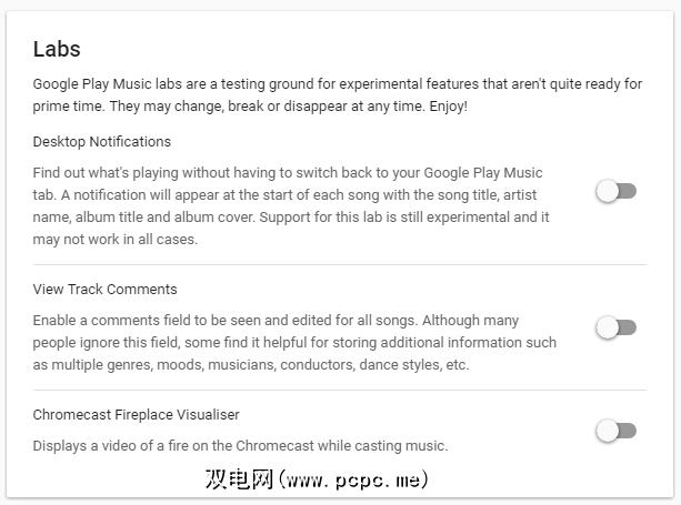 Google Play音乐提供了一些实验功能。要激活它们,请转到设置>实验,然后在要启用的功能旁边滑动开关。当前,您可以选择三种功能。