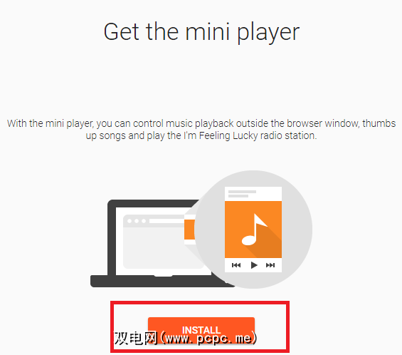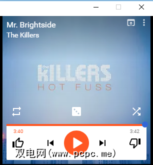 安装完成后,迷你播放器会为您提供播放/暂停按钮,大拇指/向下图标,跳过曲目按钮,随机播放和重复播放曲目的方法,以及指向“我很幸运"广播电台的链接。