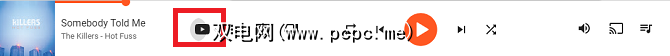 再次,该功能不是立即可见。播放曲目时,将鼠标悬停在“正在播放"面板上,然后单击微小的YouTube徽标。