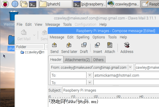 这可能是最明显的选择-当然,这是我尝试的第一件事。通过访问Raspberry Pi的默认电子邮件客户端(Raspbian Jessie的PIXEL桌面版本的Claws Mail),设置您的电子邮件帐户,添加附件并发送数据是一个简单的任务。