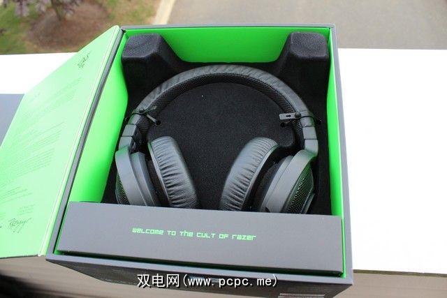 Razer乍一看看上去几乎是黑色的,但是一旦将其插入USB端口,您会发现它明亮麦克风和耳朵上的绿色指示灯亮起。