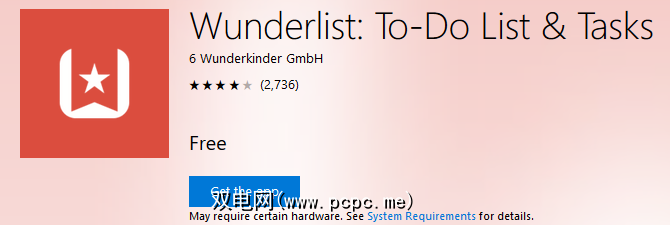 或者,您可以打开Microsoft Store应用程序(如果已安装在计算机上)并搜索Wunderlist。显示应用程序后,单击获取按钮进行安装。