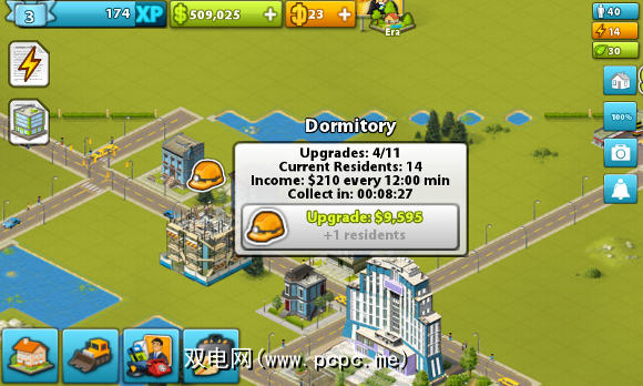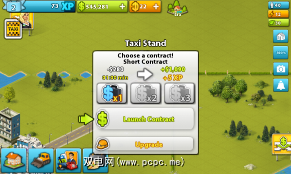 除了签订合同外,您还可以升级现有的建筑物和设施,以便将来从中获得更高的利润。城市中的每栋建筑都在为您赚钱。要确切地了解建筑物能为您带来多少收益,请点按它: