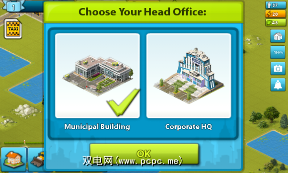 这有点奇怪。我发现很难理解为什么出租车出租车站将是我在新城市建造的第一件事。好的,让我们来看看流程和完成它(如按钮所示)。既然您已经同意建造出租车站(不是您有太多选择),那么您就可以选择将出租车放到哪里: