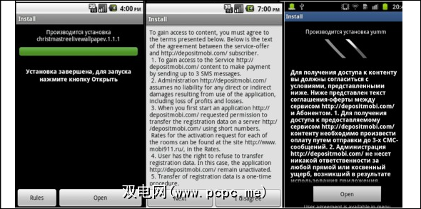 例如,不到一年前的McAfee研究发现,Android。 FakeInstaller是最广泛的恶意软件家族-McAfee发现的Android恶意软件样本中有60%以上来自FakeInstaller家族。 FakeInstaller恶意软件伪装成合法应用程序的安装程序,但会在后台发送高价SMS消息,从而使您蒙受损失。