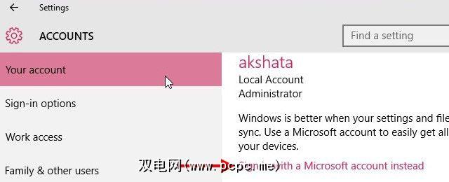 打开“开始"菜单,然后单击您的用户名>更改帐户设置。接下来,在“您的帐户"下,单击“ 使用Microsoft帐户登录"。