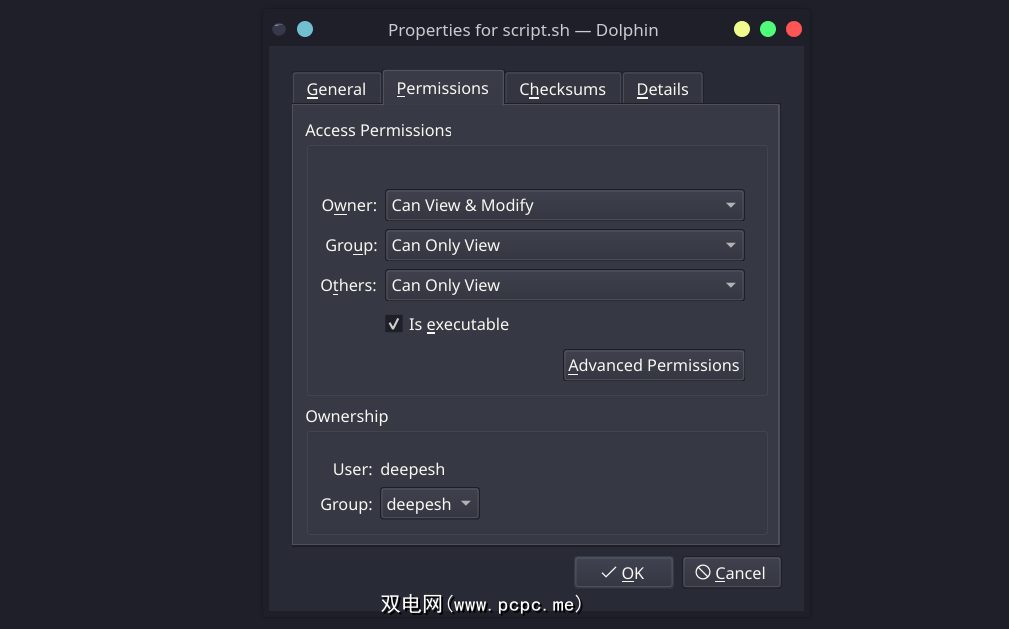 与我们之前所做的类似,您必须首先授予文件的执行权限。为此,请右键单击该文件并从上下文菜单中选择“属性”。找到显示“执行”或“可执行”的选项并勾选它旁边的框,或启用它,具体取决于您使用的桌面环境。