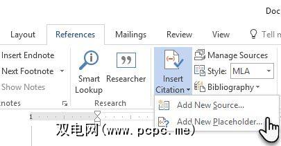 Microsoft Word具有内置的书目工具,可用于管理引文。在功能区上,转到参考标签。
