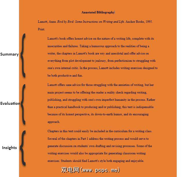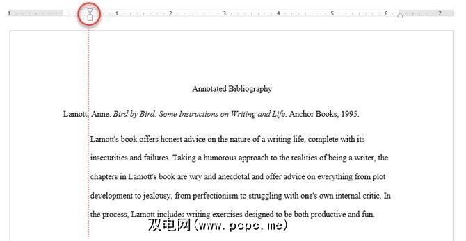 只是再次提醒您:注释从引用的下方开始。带注释的文本也在引用的下方缩进。引用的第一行以作者的姓氏开头,是整个书目中唯一齐平的文本。