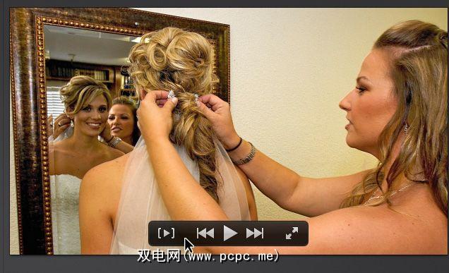 选择项目后,按空格键以预览照片开始编辑之前进行幻灯片放映。请注意,将鼠标光标放在查看器窗口内时,查看器控件会出现,用于开始和暂停视频,一次播放一个或多个选定的剪辑,在单个剪辑之间来回跳动或以全屏模式播放电影。