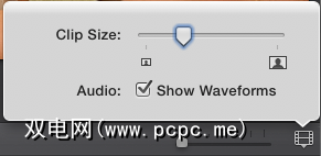 在开始编辑之前,您可能需要增加片段的查看大小,以便可以轻松地选择它们并编辑。通过单击右侧的胶片带图标并增加尺寸来做到这一点。