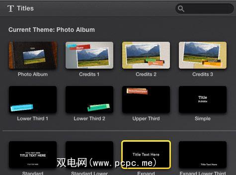 尽管无法完全自定义iMovie主题,请单击过渡iMovie的和 Titles 部分确实允许更改主题的过渡样式和标题样式。