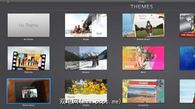 为项目选择一个主题。您可以单击一个主题并对其进行预览,以了解其运动效果。根据您的项目,简单,相册,漫画书或剪贴簿主题最适合照片幻灯片。