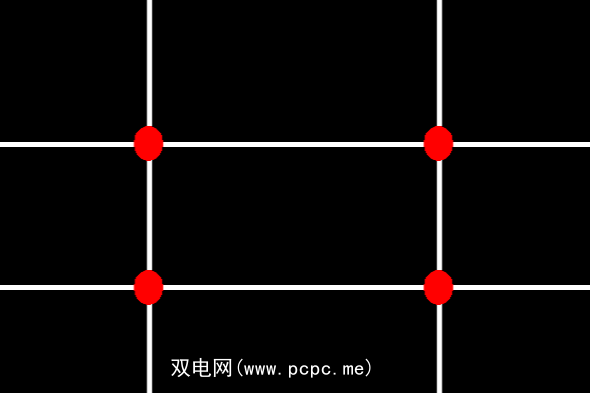 此外,尝试记住一些被称为“三分法则"的东西。基本上,这意味着您应该将屏幕分为两条水平线和两条垂直线。这些线条相交的任何地方都是镜头中最有趣的部分,尽管有一些例外情况,但是如果将脸部放在这些相交的点上,则镜头看起来会变得更好。下面是一个视觉辅助工具,可能会对您有所帮助。